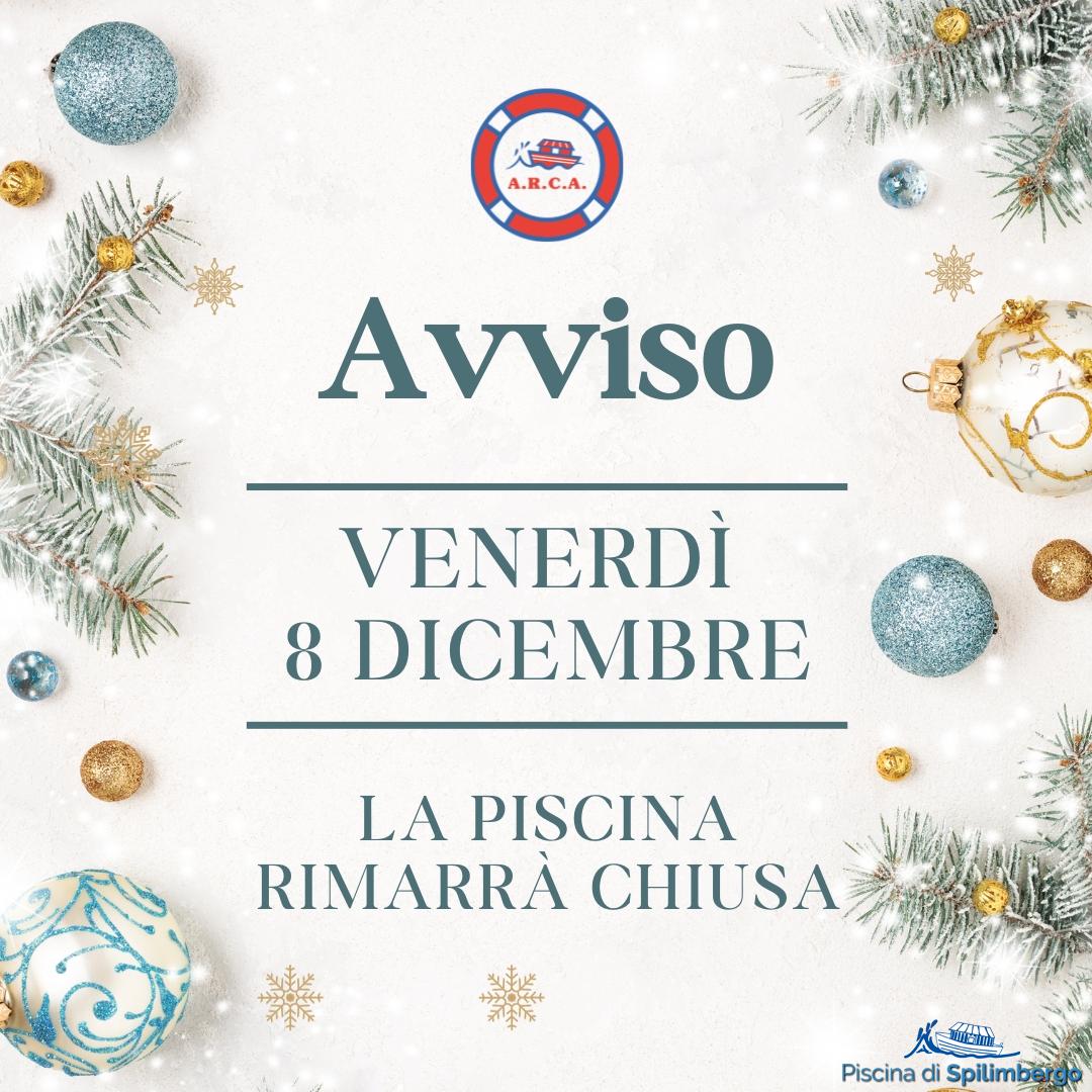 8 dicembre Articolo del 29/11/2023 ‹ › × × Venerdì 8 dicembre la piscina rimarrà chiusa. Commenti Abilita JavaScript per visualizzare i commenti tramite Disqus.